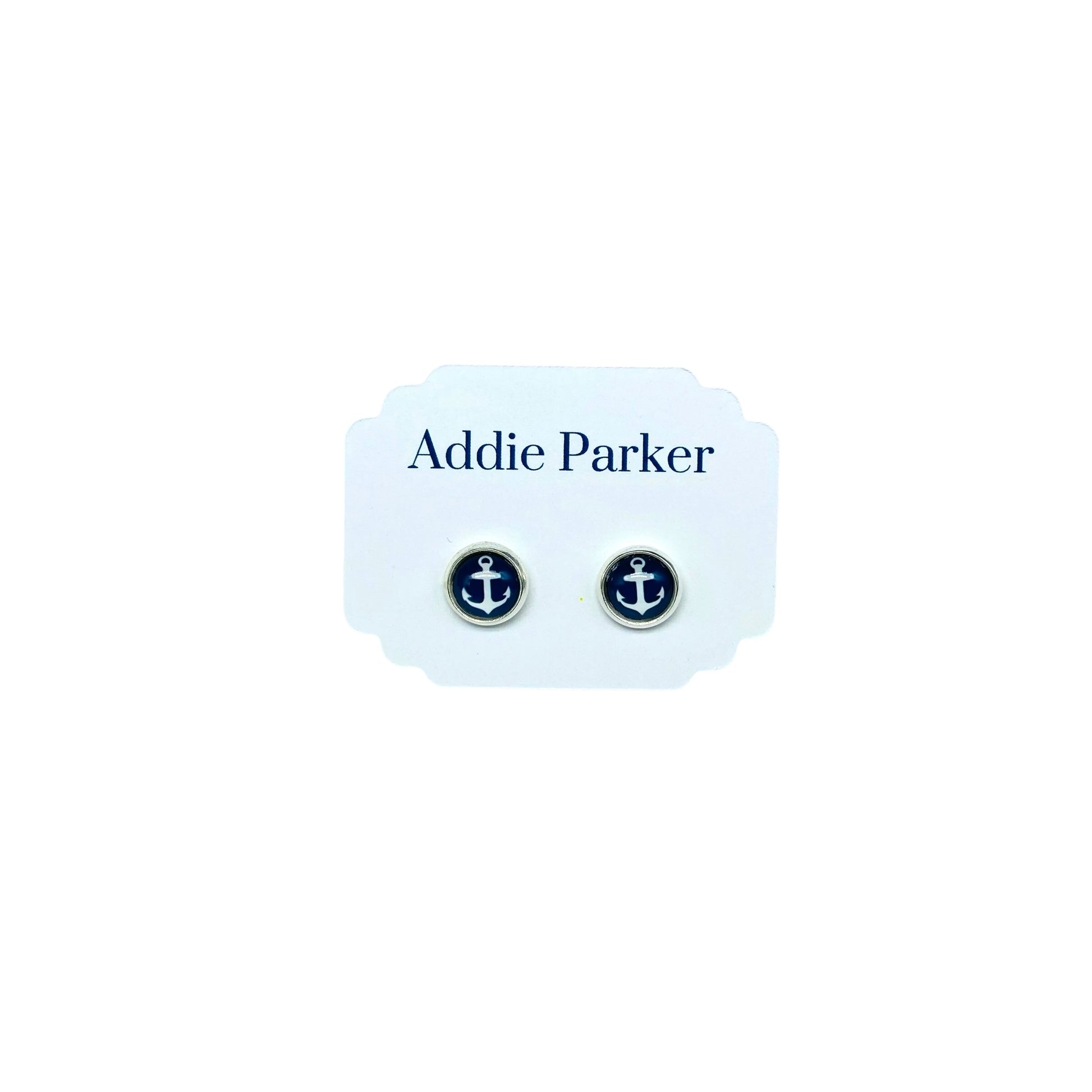 Small Stud Earrings (ST 12) - Navy Blue Anchor