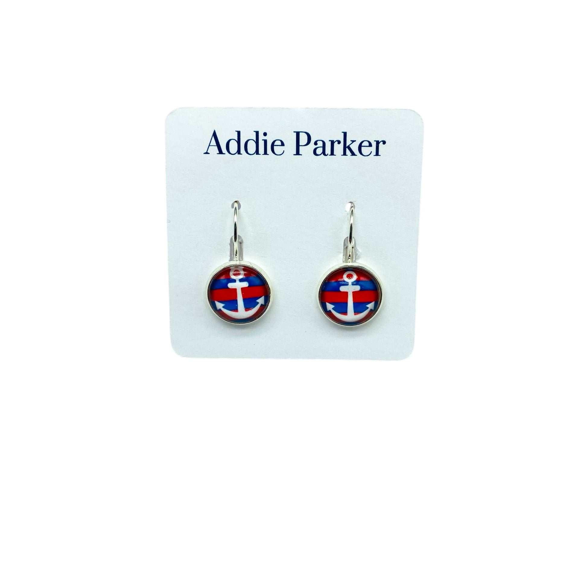 Lever Back Earrings (E 80) - Red White Blue Anchor Leverback Earrings