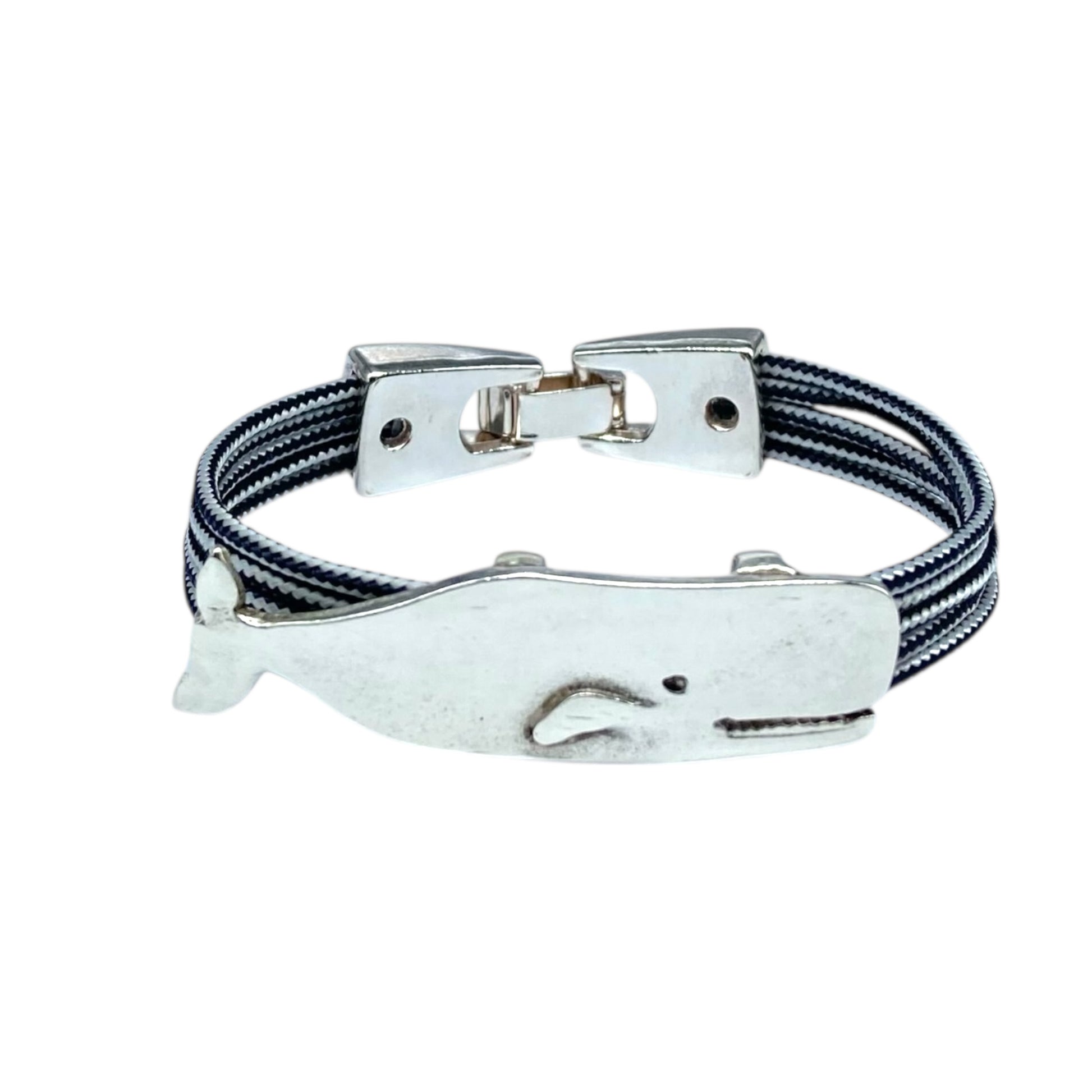 Inspired by the rhythm of the sea, this whale bracelet is crafted from durable sailing rigging line for authentic coastal feel. The strong yet lightweight cord is designed to withstand everyday wear, just like the ropes used out on the water. At its center a whale design adds a subtle nod to ocean life.
